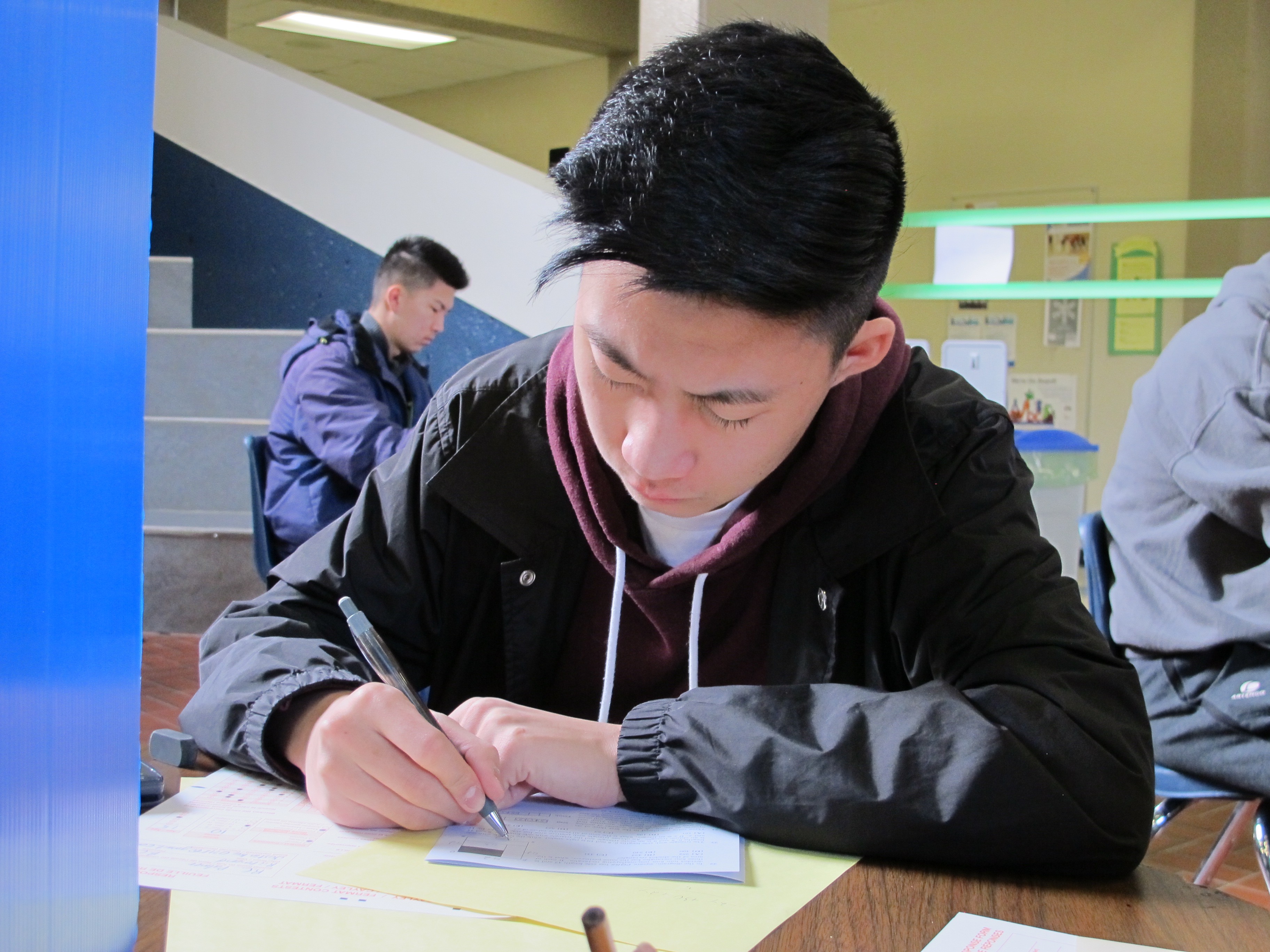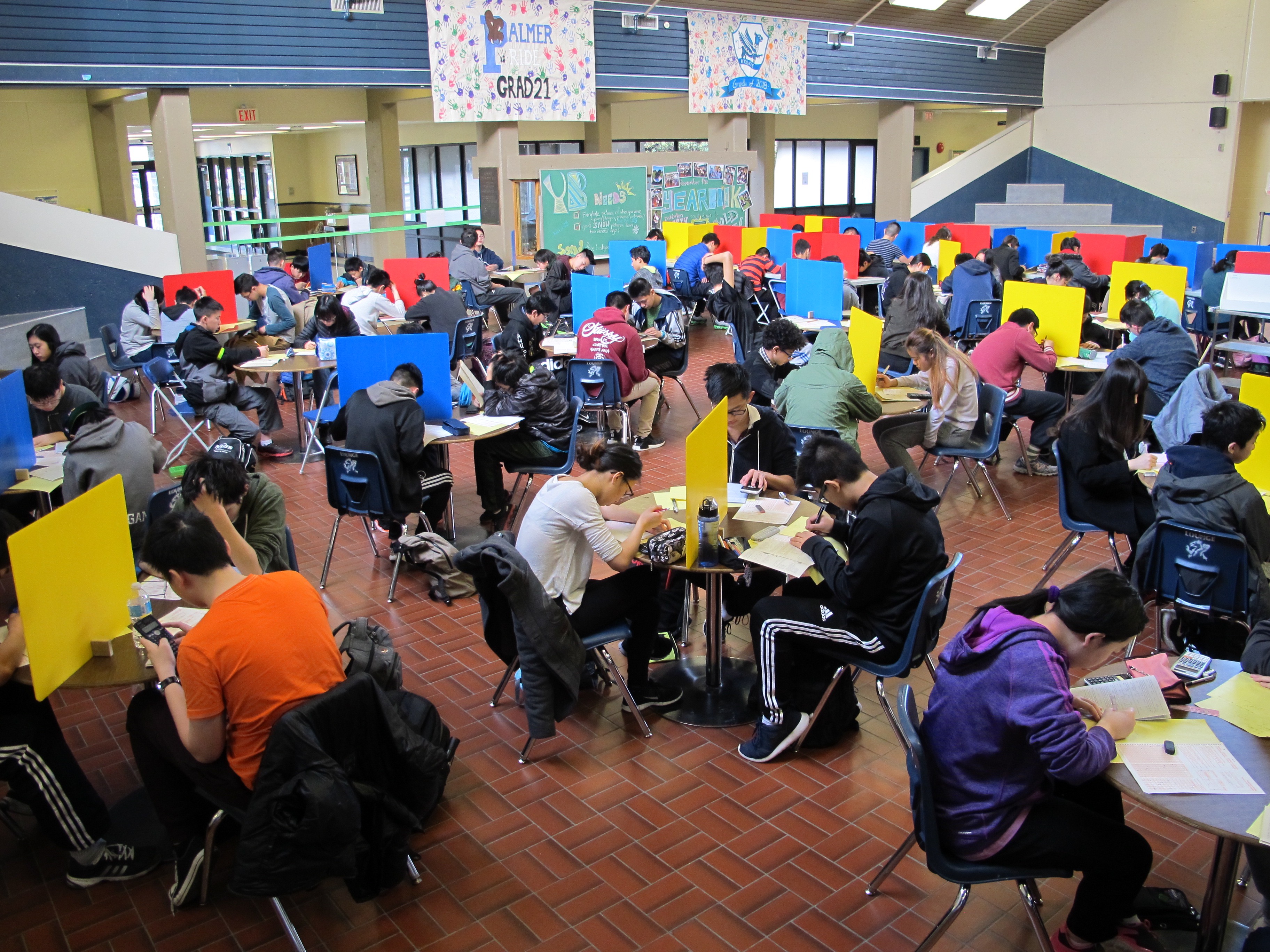 On Tuesday, February 28th, 2017, over 100 Palmer students (joined by a few Grade 7 students who have been attending our Junior Math Club meetings) wrote the annual University of Waterloo Math contests for Grades 8-11 (the Pascal Contest for Grades 8 and 9; Cayley Contest for Grade 10; and Fermat Contest for Grade 11). Students were packed into Palmer’s main lounge for the 8:30AM start of the one-hour contest, and they busily spent the next hour calculating and problem-solving their way to the solutions. Contest papers were then sent away to the University of Waterloo for marking and statistical analysis, and results should be known by mid-April. Certificate awards will be presented in each contest to students who place in the top 25% of all students who wrote the contests in Canada. In addition, the top student at Palmer on each contest will be presented with a school champion medal. Top schools in each zone, province, or in the country may earn championship plaques.